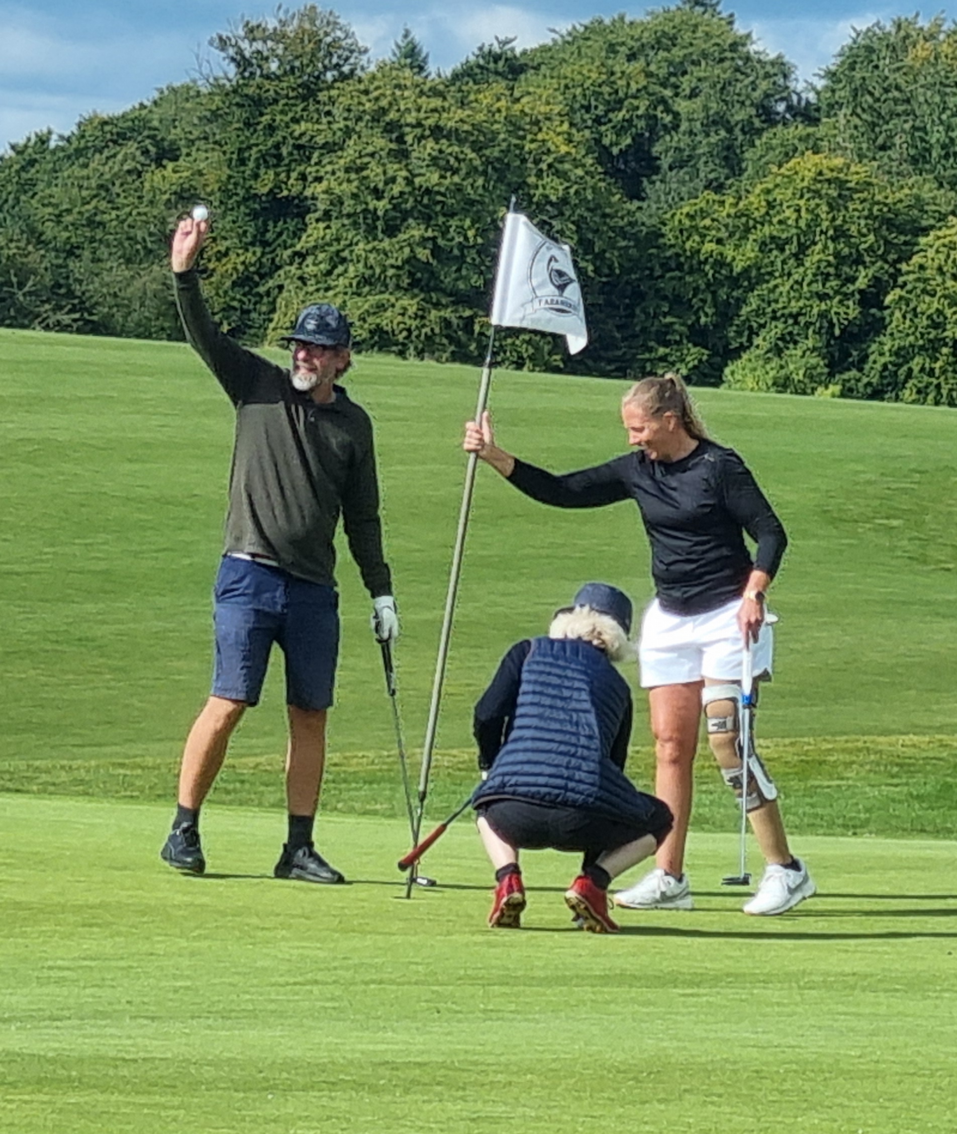 ”Jeg havde fornøjelse at følge Mette Lynggaard og Troels ned af hul 18, et 477 meter langt par 5 hul. Troels slog Driver, Driver (ned i green bunker), Sandwich (til 1½ meter) og i for en Birdy. Det var god golf og det synes både Troels og Mette som er en del af landsholds brutto truppen i paragolf også 😊